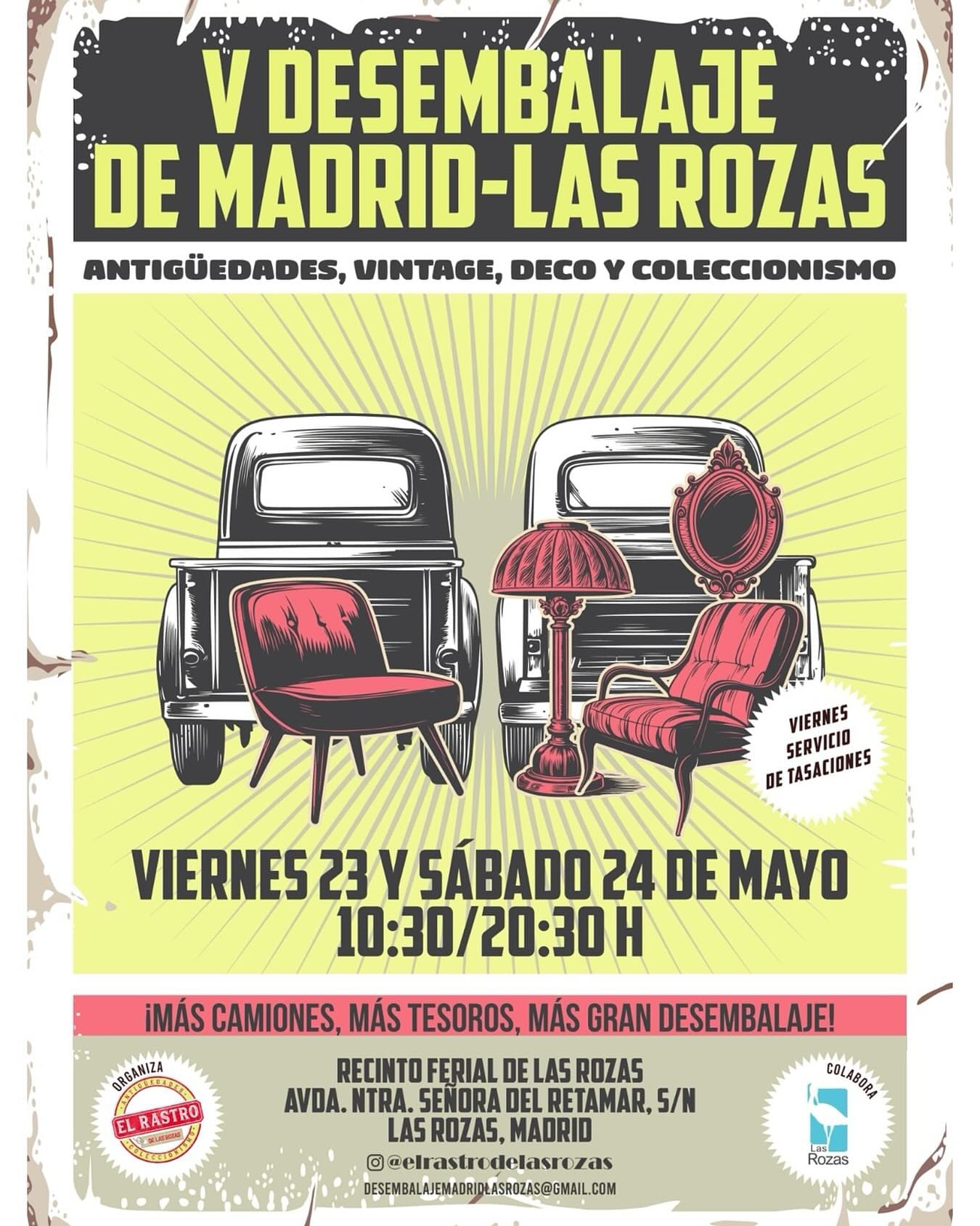 El mercadillo vecinal de segunda mano de Las Rozas es los cuartos sábados de cada mes de 10:00 a 14:00 en la Calle Real. Juguetes, menaje del hogar libros, ropa,...