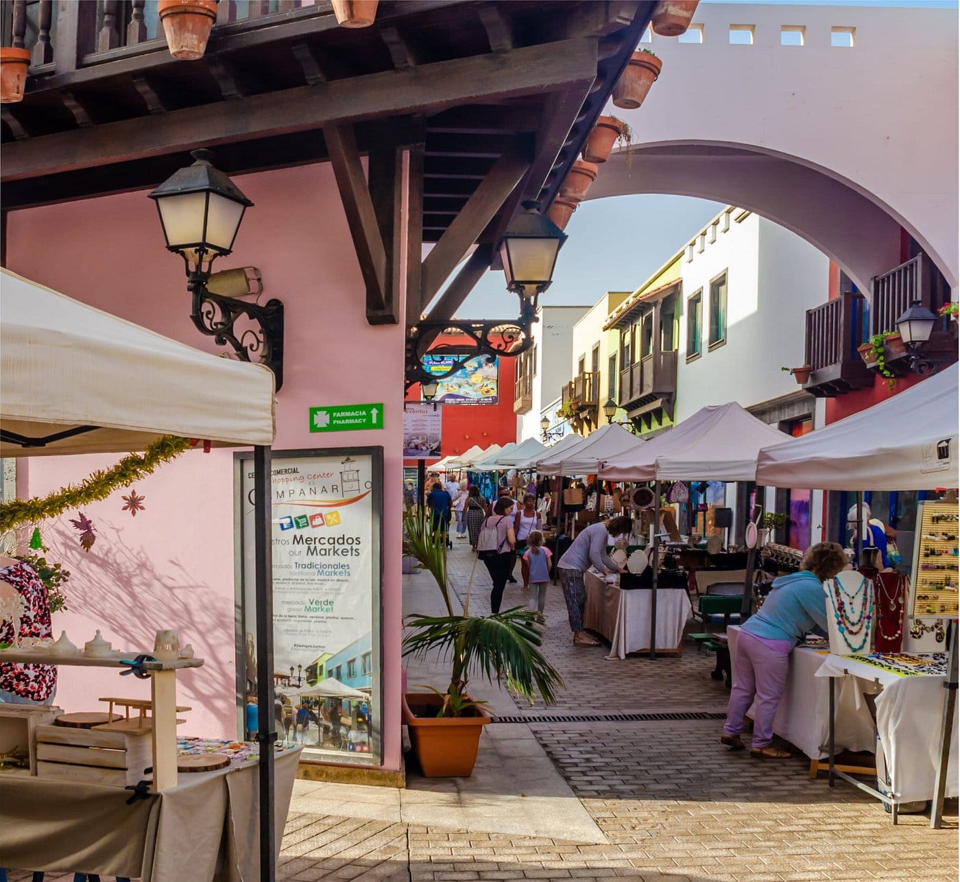 El Mercadillo Canario de Corralejo es una de las mejores opciones en Fuerteventura para encontrar productos artesanales y especialidades locales. Se celebra los jueves y domingos en el Centro Comercial El Campanario, ofreciendo un entorno agradable con terrazas, música en vivo y una cuidada selección de productos.
