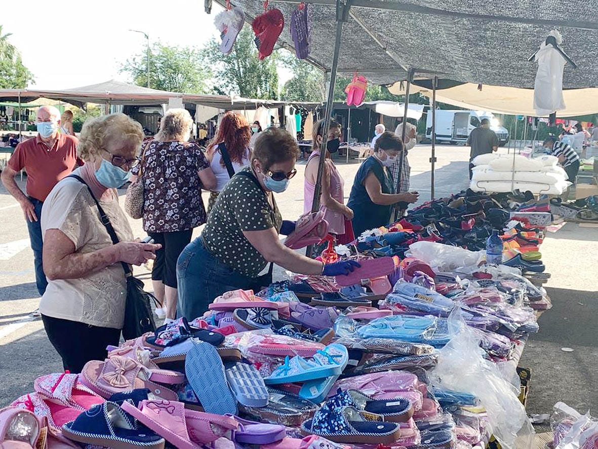 El mercadillo de la Barriada Ciudad Jardín, en Málaga, se celebra los jueves de 9:00 a 14:00 con unos 120 puestos de ropa, calzado, flores, complementos, frutas, verduras, etc.