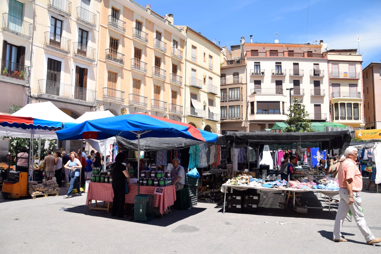 El mercadillo en Gironella es los miércoles de 8:00 a 13:00 en la Plaça de la Vila. Unos 10 puestos de frutas y verduras, ropa, calzado, etc.