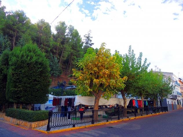 El mercadillo en Torreperogil es los lunes de 8:00 a 14:00 en el Paseo de Santiago con unos 60 puestos de alimentos, textil, hogar, etc.