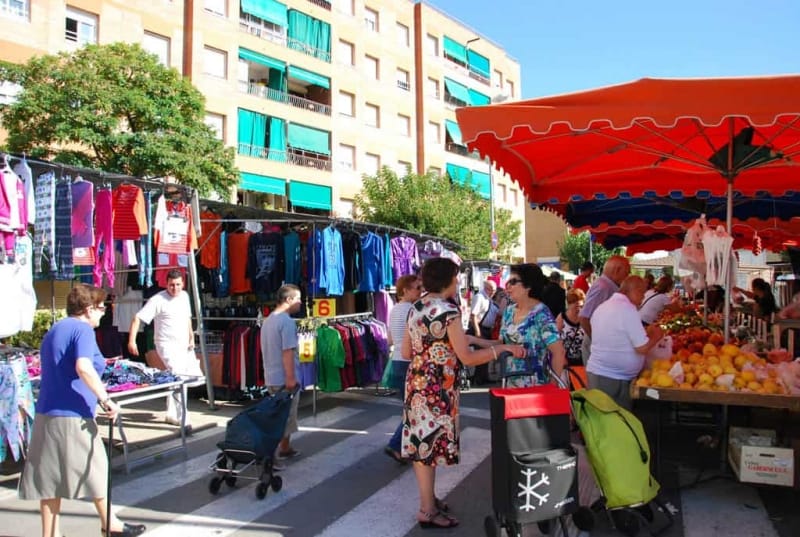 El mercadillo en Montornès Centro es los viernes de 8:00 a 13:00 en la calle Jaume Balmes. Hay unos 40 puestos de frutas, verduras, ropa, calzado, etc.