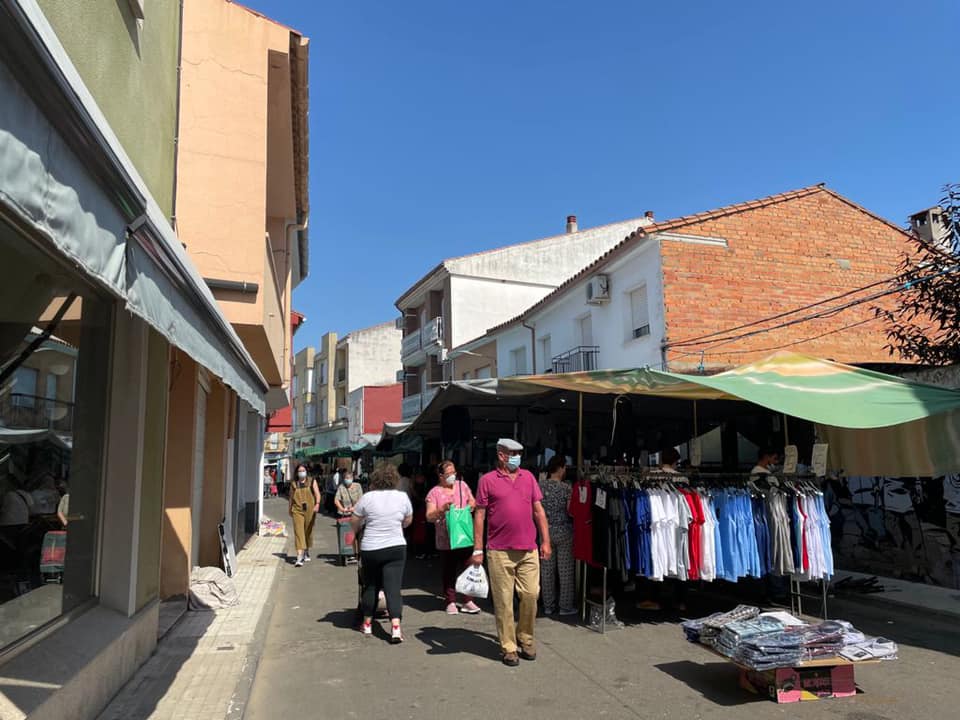 El mercadillo en Coria se celebra los jueves de 9:00 a 14:00 en la Calle Morcillo con unos 100 puestos de alimentación, textil, hogar, etc.