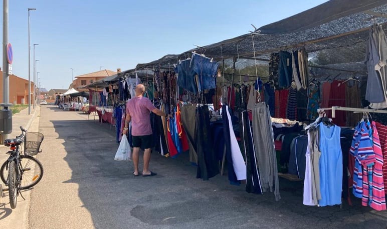 El mercadillo de Utebo se celebra los viernes de 9:00 a 14:00 en la Plaza Zaragoza con unos 20 puestos de textil, hogar, etc.