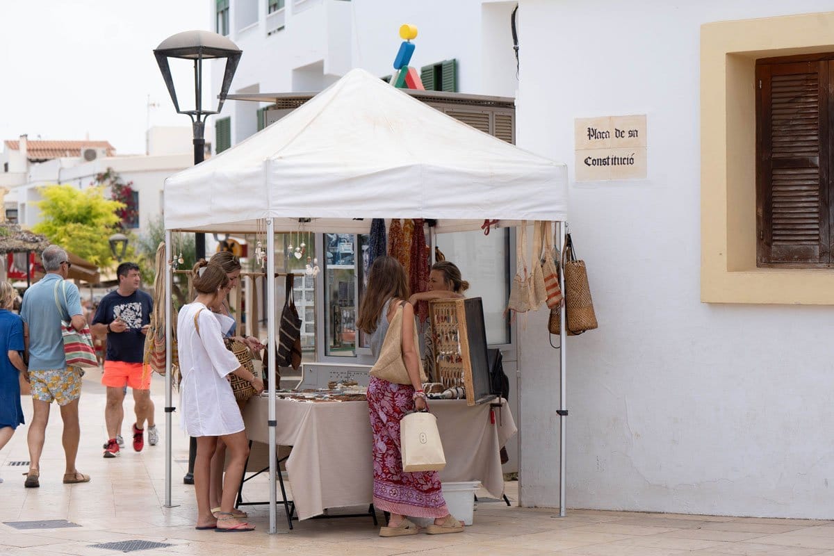El mercadillo de Sant Francesc está abierto todos los días excepto domingos de julio a septiembre, por la mañana, en el centro de la capital administrativa de Formentera. Este mercado callejero se integra en la zona comercial del pueblo, ofreciendo un ambiente tranquilo y auténtico para quienes pasean entre tiendas, cafeterías y puestos de artesanía. Sus paradas están distribuidas alrededor de la Plaza de la Constitución.