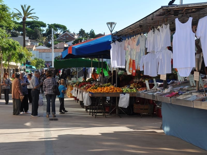 El mercadillo semanal de Canet de Mar es los miércoles de 9:00 a 13:30 en la Riera del Pinar. 40 puestos de frutas, verduras, alimentación, ropa y accesorios, etc.