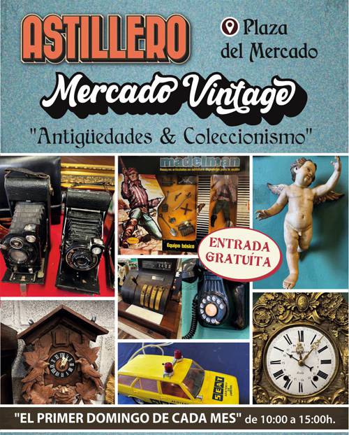 Cada primer domingo de mes la Plaza del Mercado de Astillero se transforma en un escenario para los amantes de las antigüedades y el coleccionismo, con la celebración del Mercado Vintage.