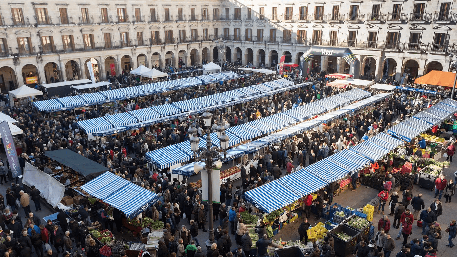 El mercado contará con 100 puestos y 80 vendedores, de los cuales, la mitad son alaveses, y el resto de otros territorios vascos y lugares como Girona, León o Burgos, entre otros. Así, podremos encontrar alimentos caseros como frutas y verduras, legumbres, repostería, vinos, embutidos,… junto con productos como botas de vino, adornos de madera, etc.